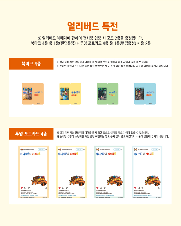 지금 '아니메쥬와 지브리展' 얼리버드 티켓을 예매하면 25% 할인에 더해 한정 굿즈까지 받을 수 있습니다.